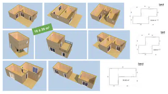 Nous avons préconfiguré 8 solutions optimisées pour des studios de jardin, habitations, bureaux, etc., avec des tarifs compétitifs pour des KITS BOIS en « prêt à poser ». Ces solutions s’appuient sur des panneaux standardisés et une préparation en atelier, garantissant ainsi leur efficacité.